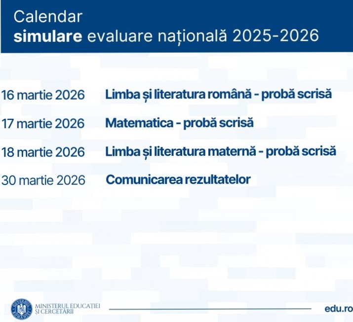 Calendar SIMULARE Evaluare Națională 2025-2026 aici