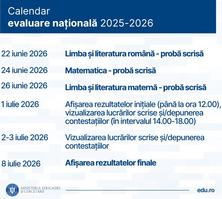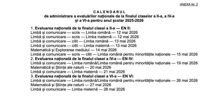 Calendar Evaluare Națională 2025-2026 aici